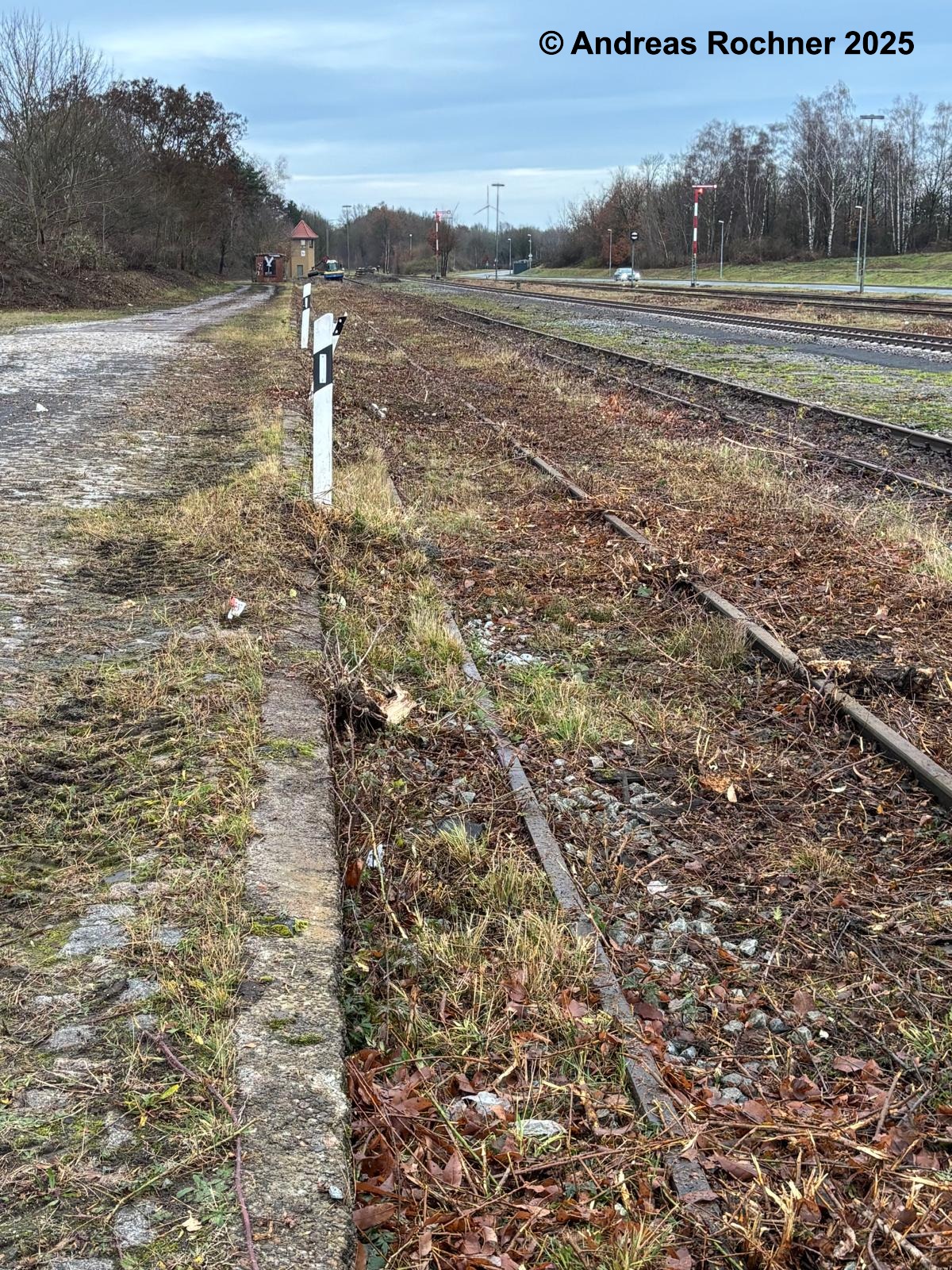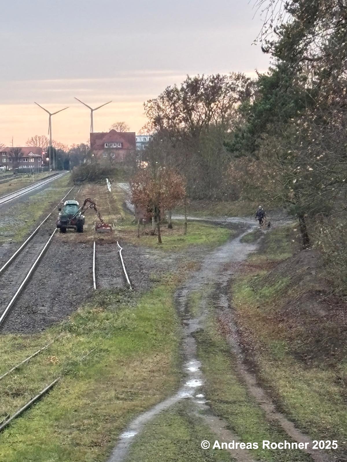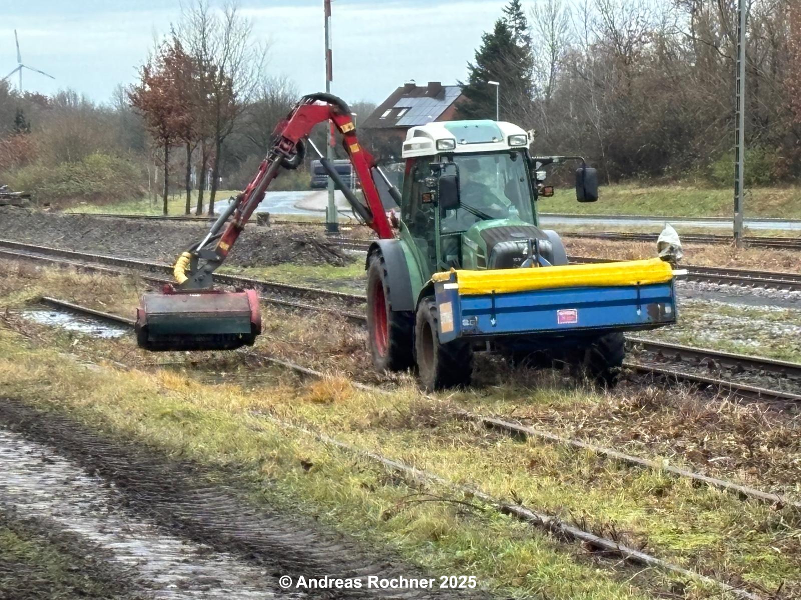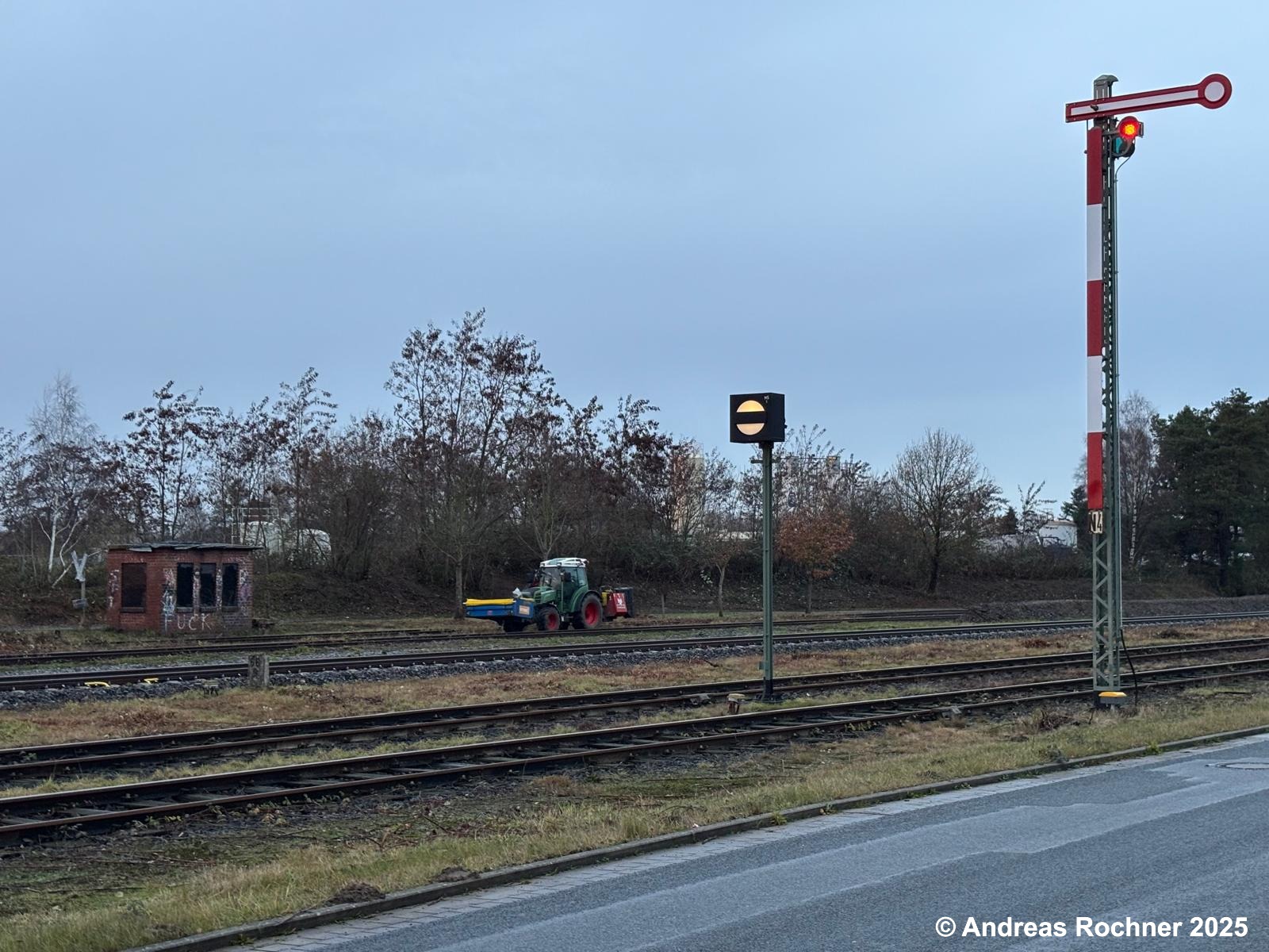 Am 09.12.2025 rückte ein Vereinsmitglied mit seinem Trecker und Mulcher an, um den Bewuchs in Gleis 13 (Gleis an der Gleiswaage und der ehemaligen Ladestraße), an der Zuwegung zum Stellwerk, an der Gleiswaage und am Stellwerk Sn zu mulchen.