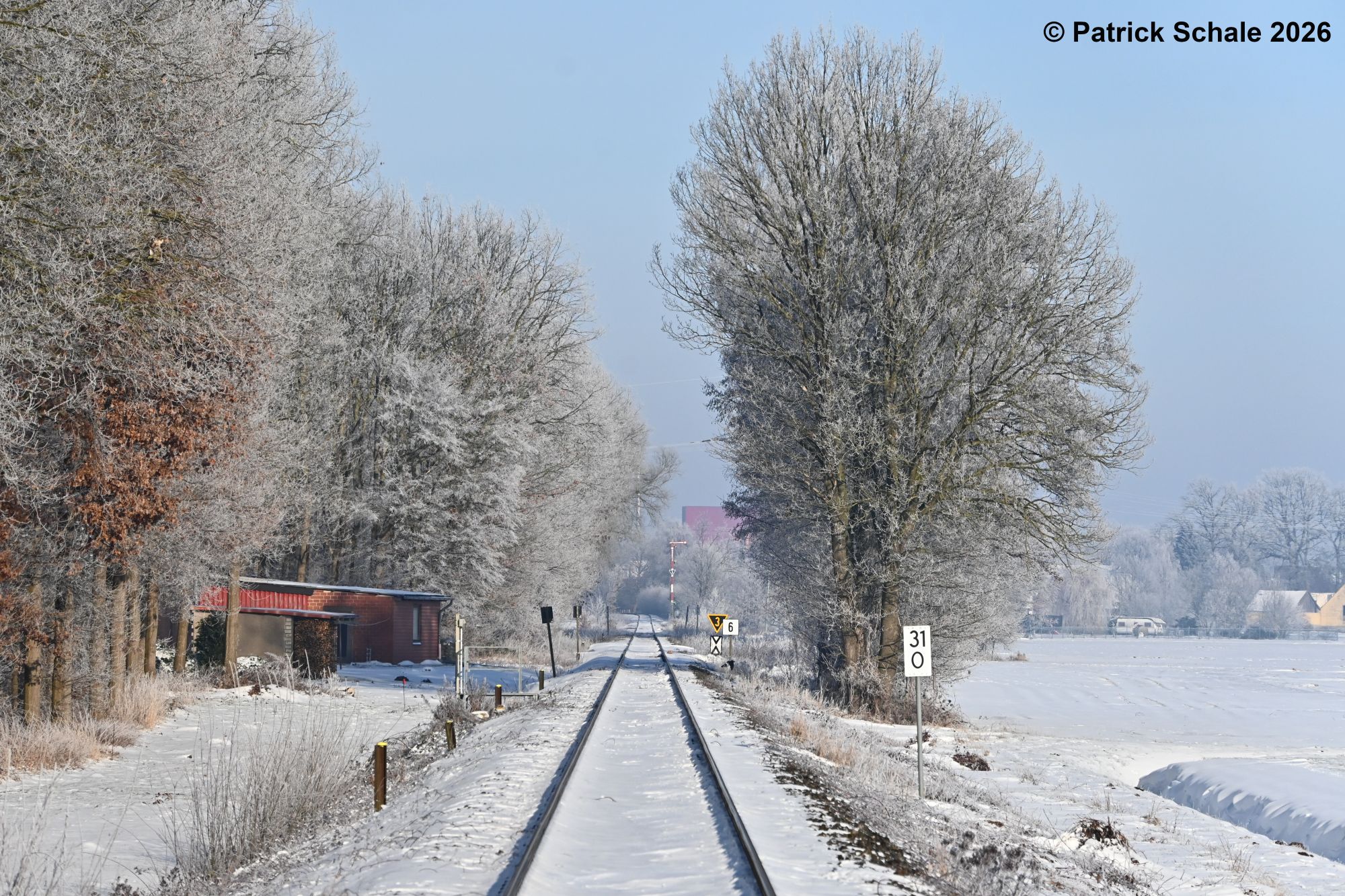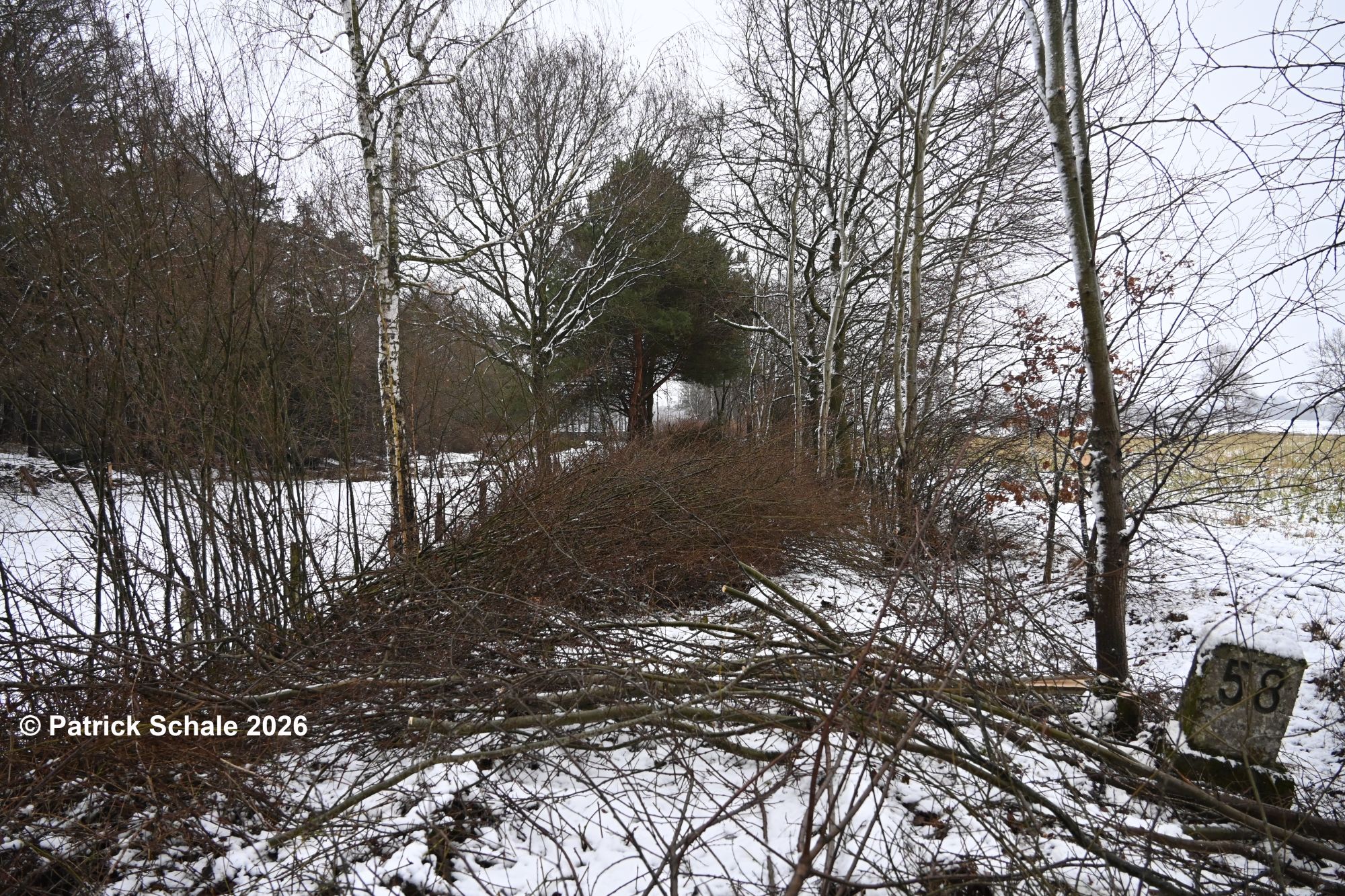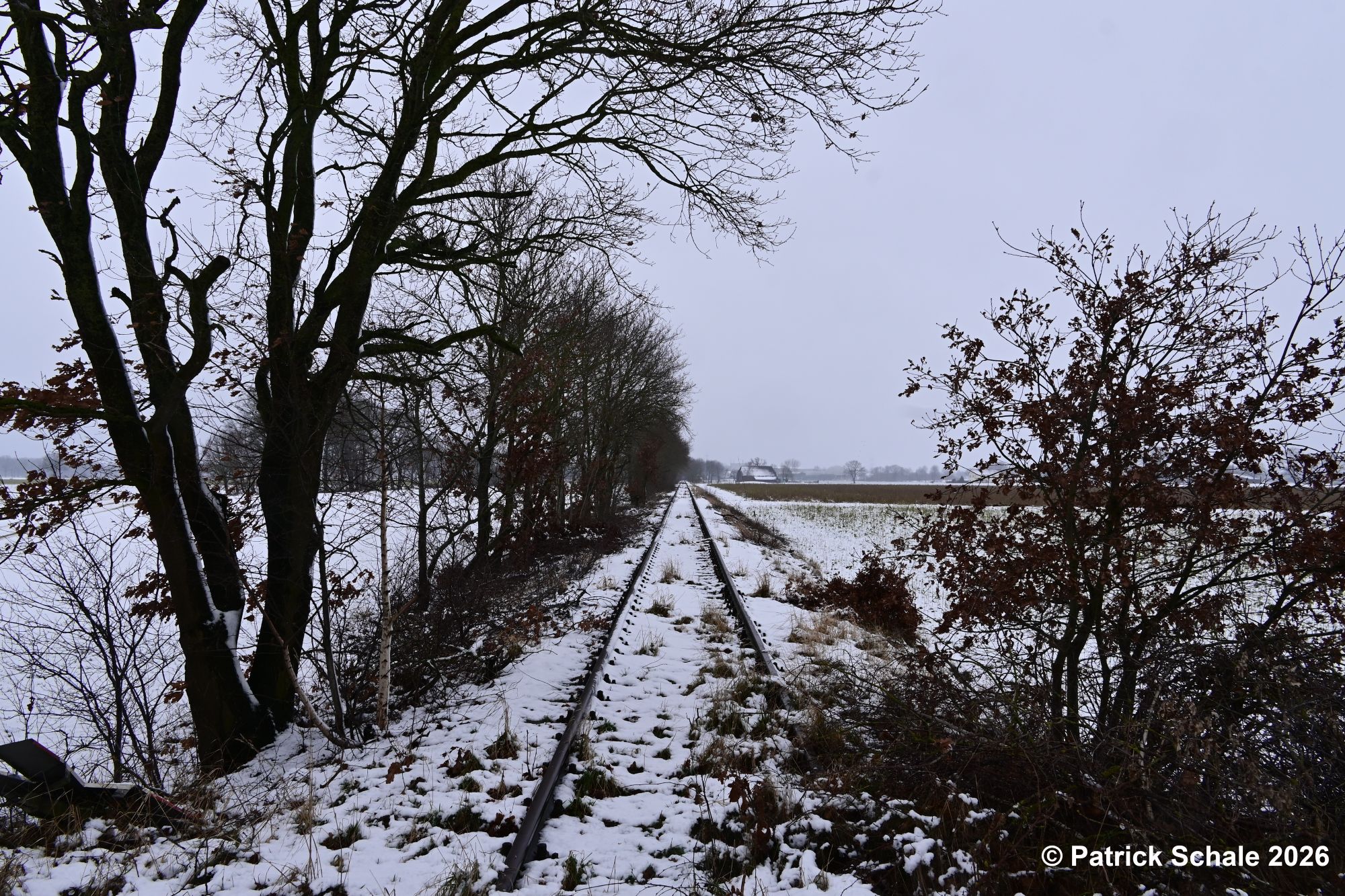 Gleich zu Beginn des Jahres 2026 kam es in Norddeutschland zu Schneefällen, sodass sich auch die Bahninfrastruktur des Sulinger Kreuzes in einem winterlichem Kleid präsentierte. Dies hielt drei Aktive des Vereins jedoch nicht davon ab, in den ersten Arbeitseinsatz im Jahr 2026 zu starten. Nachdem wir im Oktober bereits bei Dauerregen den Streckenfreischnitt in Varrel für diese Saison begonnen hatten, wurde dieser nun bei zeitweisem Schneefall in Richtung Barenburg fortgesetzt. Dabei kamen bis zum Mittag erneut 100 – 200 m Stecke zusammen, die nun freigeschnitten sind. In einem der nächsten Arbeitseinsätze ist nun geplant, die abgeschnittenen Äste von der Strecke zu räumen.